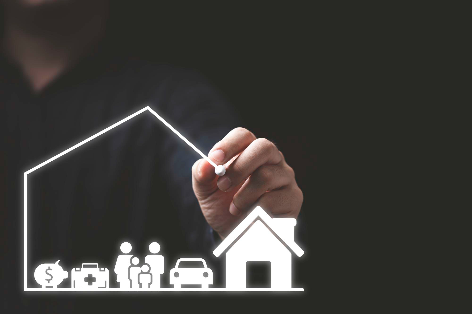 escudo-proteccion-escritura-mano-cuidado-salud-familia-automovil-casa-icono-cerdito-ahorro-gestion-riesgos-concepto-seguro