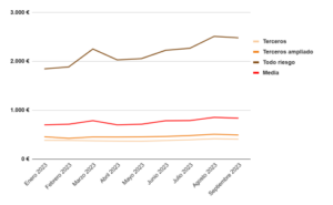 En cuanto a la evolución mes a mes, el precio de los seguros de Autos aumentó en agosto un 8,38% de media entre todas las modalidades, el mes de mayor encarecimiento intermensual. Sin embargo, en septiembre se alivió ligeramente la tendencia, y entre todos los segmentos los seguros se abarataron un 2%.