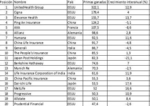 Por otra parte, Japan Post Holdings y AXA experimentaron disminuciones significativas en su facturación por primas, con caídas respectivas del 21,1% y 8,6% respectivamente.